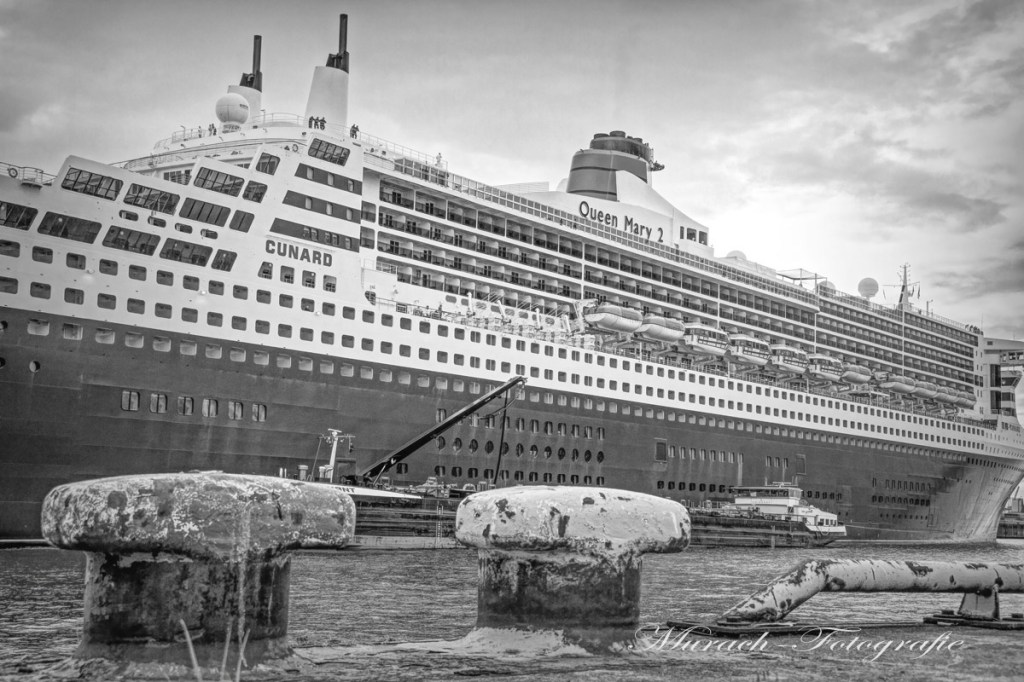 Am 12. August 2018 kam die Queen Mary 2 wieder nach Hamburg. Wie immer, legte Sie im Kreuzfahrtterminal Steinwerder am frühen Morgens an, und am Abend wieder ab. Das heißt, schnell zum Kreuzfahrtterminal Steinwerder und ein paar Bilder machen.Wenn die Queen der Meere in Hamburg ist, ist das immer etwas Besonderes. Die Deutschen lieben irgendwie dieses Schiff. Die Barkassen machen dann die Hafenrundfahrt mit den Touristen einen Umweg nach Steinwerder, um das Schiff mal von der nähe zu sehen.Wie man sieht, wird die Queen Mary 2 hier betankt und mit Vorräten versorgt, bis Sie dann wieder in hohe See sticht.Ahoi