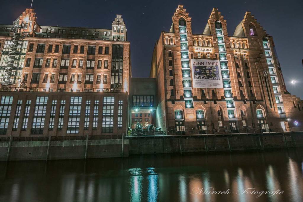 Das Maritime Museum in der Speicherstadt ist in der Nacht ein wunderschöner Fotospot. Ich liebe es Nachts durch die Stadt zu laufen, die Lichter der Stadt mit meiner Kamera festzuhalten. Gerade die Speicherstadt und Hafencity mit ihrer beeindruckenden Architektur sind Nachts wundervoll beleuchtet. Dabei entstehen solche beeindruckende Bilder, ich hoffe sie gefallen euch auch.